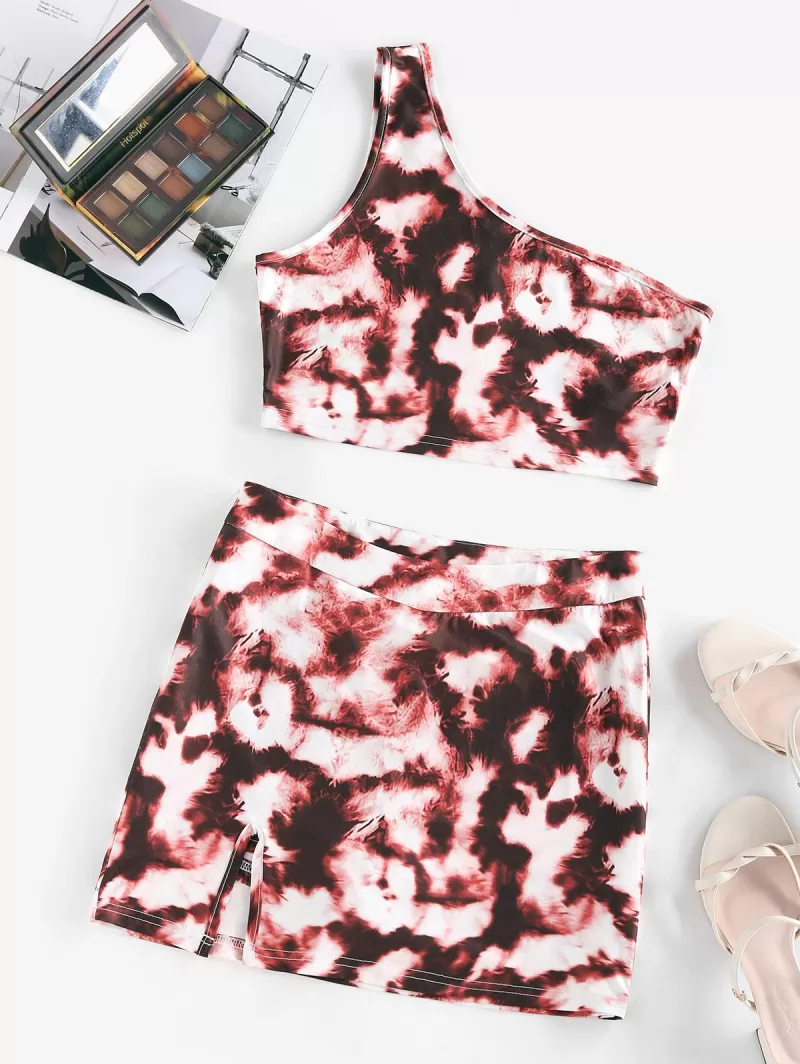 Tie Dye One Shoulder Crop Top And Skorts Two Piece Set