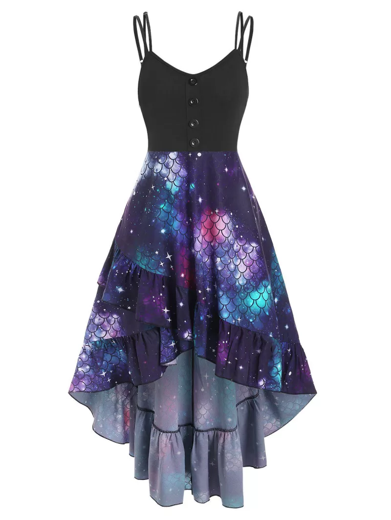 Flounce Sunflower Angel Scale Print High Low Mermaid Dress