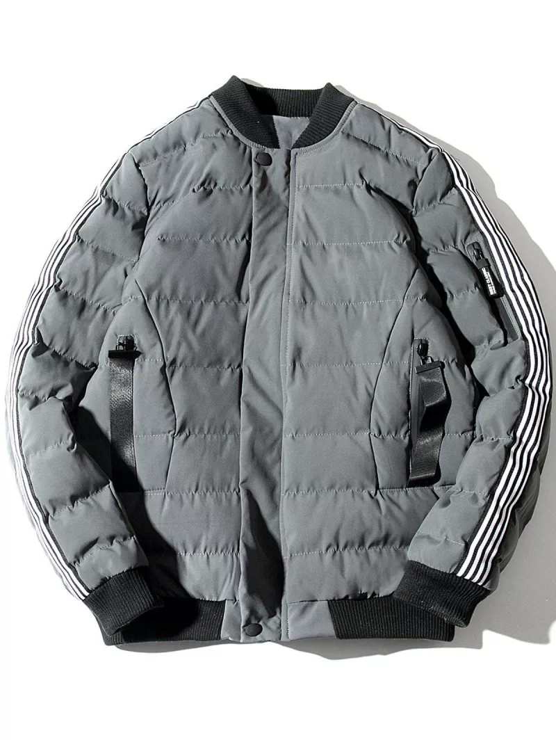Stripe Padded Zip Up Baseball Jacket
